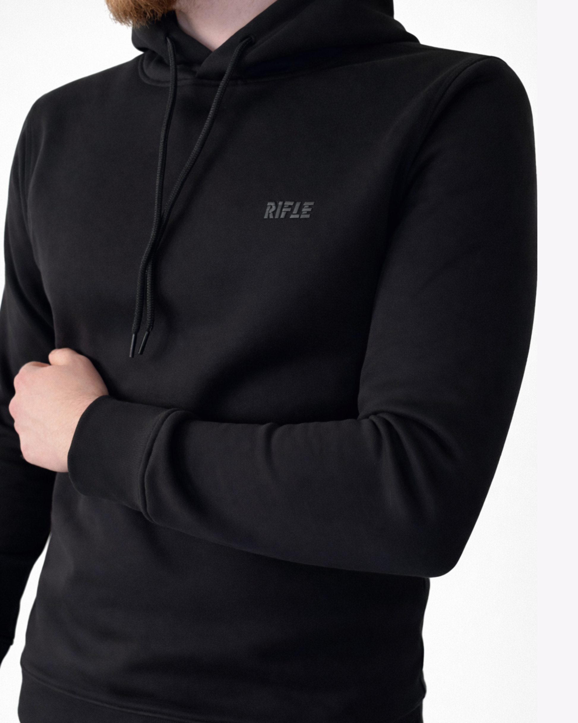 Rifle juodas džemperis – Slim Fit universalus ir modernus